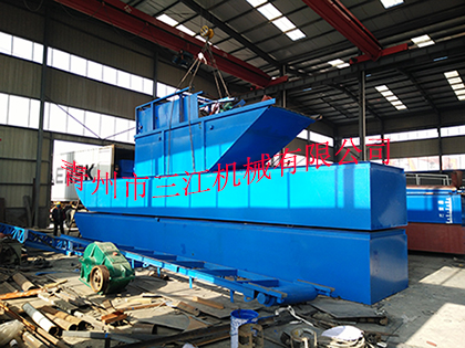 本設(shè)備為旱地篩沙、洗沙一體機(jī),每小時(shí)的處理量為200立方米,配用動(dòng)力為50kw柴油發(fā)電機(jī)組。