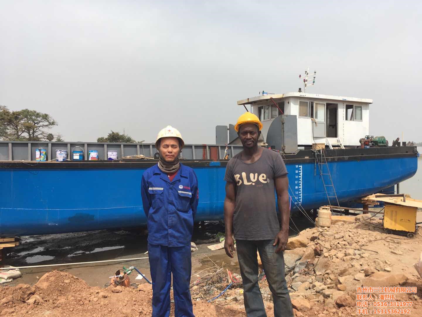 非洲幾內(nèi)亞比紹客戶定制的100噸開體拋石船試車成功,交付使用。