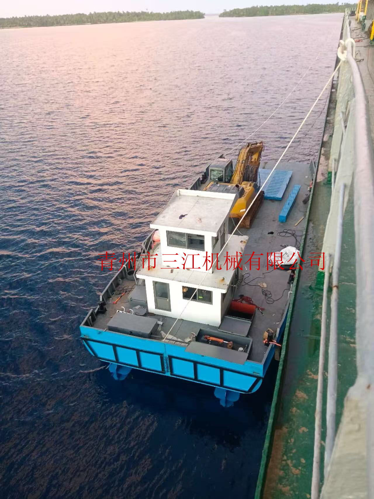 2023年,中鐵集團(tuán)承接了密克羅尼西亞一處原始島嶼的綜合開發(fā)工程。該島風(fēng)景秀美,椰林成蔭、白沙碧海,但基礎(chǔ)設(shè)施幾乎為零——無(wú)港口、無(wú)淡水、無(wú)電力,甚至連基本的物資卸載平臺(tái)都不存在。項(xiàng)目首期建設(shè)需運(yùn)輸約3萬(wàn)噸建材與設(shè)備上島,然而由于島嶼近岸比降為8:1,大型運(yùn)輸船只無(wú)法靠岸,只能在距離島岸2-3公里的深水區(qū)停泊。傳統(tǒng)方式如小型一體接駁船,穩(wěn)定性差、裝卸效率低,無(wú)法滿足施工要求。