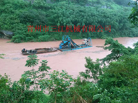 本公司2014年為重慶客戶制造的挖沙挖石船。本設(shè)備每小時工作量為60立方米。由于此河段含沙量僅僅為20%左右,所以采用了半圓挖沙斗,各部位進(jìn)行了加強(qiáng)處理。