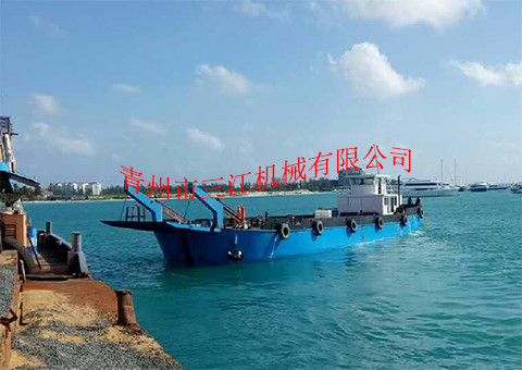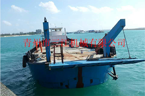 本設(shè)備是我公司于2017年6月份為馬爾代夫共和國(guó)制造的自航甲板駁,根據(jù)當(dāng)?shù)責(zé)o固定航道、水深不大于2米的具體工況情況設(shè)計(jì)定做,吃水深度2米,滿載航行速度8節(jié)。本設(shè)備適用于近海三級(jí)航區(qū)的車輛、人員、散雜貨、集裝箱等的接駁運(yùn)輸。具體噸位,可根據(jù)客戶要求定做。