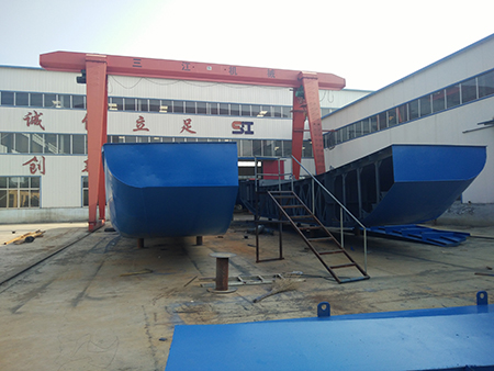發(fā)往斐濟共和國的制造中的100噸近海甲板駁船。濰柴船用機、杭齒變速箱、ccs級